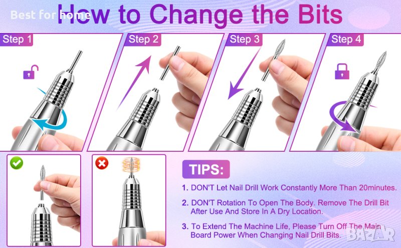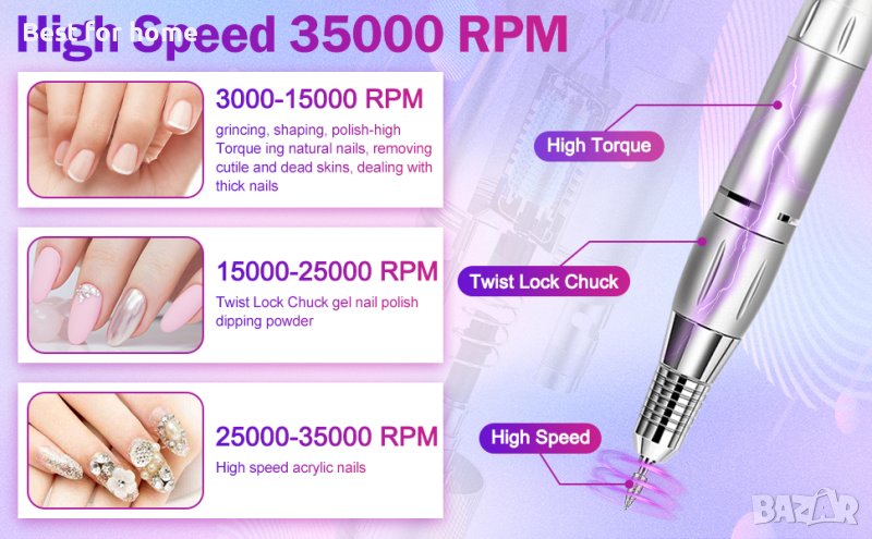 Нашата професионална бормашина за нокти също е с ергономичен дизайн, което прави бормашините лесни за управление за експертна прецизност от комфорта на дома.