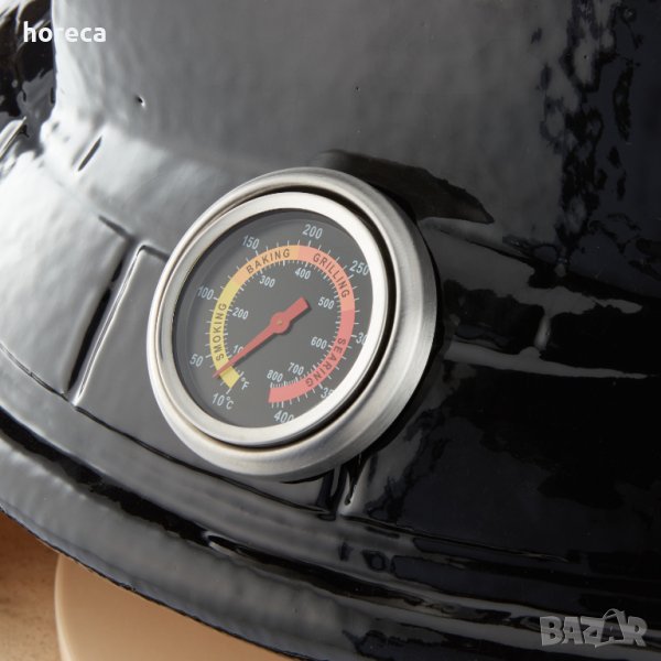 С термометъра, оборудван с температурна скала по Целзий и Фаренхайт, можете лесно да следите температурата вътре в пещта и да изпечете вашата пица прецизно.