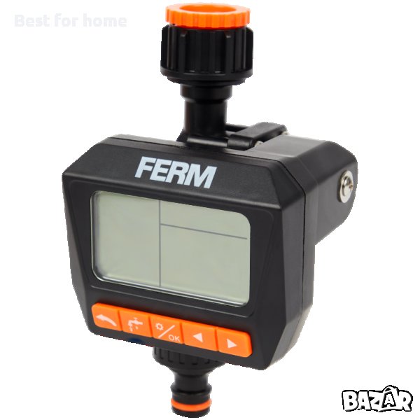 Ако търсите практичен и ефективен начин за поливане на градината си, този цифров таймер за вода от Ferm е отличен избор. Цифровият таймер е точен, лесен за използване и изключително гъвкав, което го прави основен инструмент за всеки градинар. Можете да зададете до 3 графика за поливане на ден. Таймерът работи с 2 батерии AAA