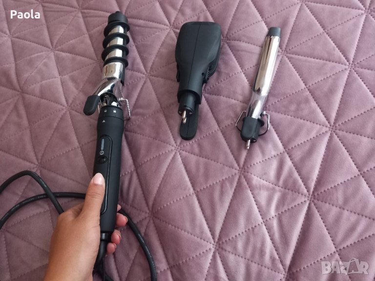 Уред за коса 4 в 1 - за едри и по-малки къдрици, за изправяне и "вафли". Керамично покритие. Нов, почти не ползван.