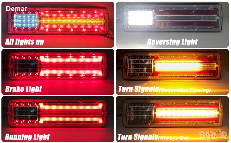Тези неонови задни светлини за камиони предлагат режими пет в едно, служещи като светлини за шофиране с червени къси светлини, спирачни светлини с червени дълги светлини, последователно преминаващи мигачи с кехлибарена светлина, винаги включени светлини за мигачи с кехлибарена светлина и Задни светлини за заден ход с бяла светлина. Те са оборудвани с висококачествени LED лампи, осигуряващи супер яркост за подобрена безопасност при шофиране през нощта. Издръжливата конструкция включва метална обвивка и PC леща за бързо разсейване на топлината, удължавайки експлоатационния живот на светлините. С прахоустойчиви и водоустойчиви характеристики IP67, тези светлини осигуряват надеждна видимост при различни метеорологични условия, като помагат за предотвратяване на удари отзад. Инсталирането им е лесно с включените монтажни винтове и подходящ монтажен отвор от 5 mm, което ги прави подходящи за всички 24V превозни средства, включително камиони, ремаркета,