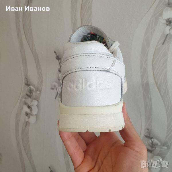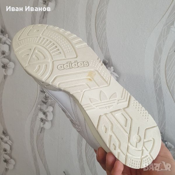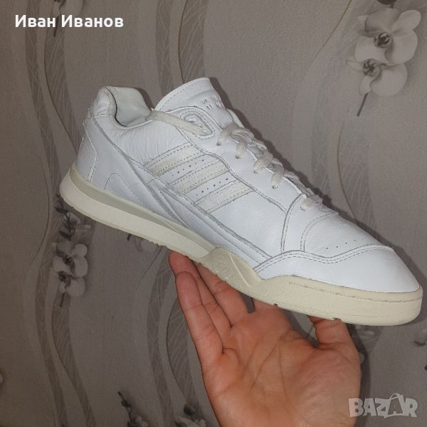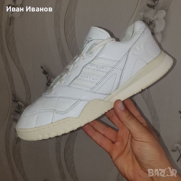 ADIDAS A.R. TRAINERМного малко използвани , без никакви следи и забележки Кожата е перфектна , много здрава и качествена Цена по магазините около 200 лева Вдъхновени от реколтата на тенис от 80-те години, проектирана да изпълнява трева, глина и цимент, тези обувки придават нов облик на наследство. Те са изработени от гладка кожа и показват открит клин от EVA амортизация.● Дантелено затваряне● Кожена горна част● Гумена подметка; Текстилна подплатаКатегория: adidas OriginalsИме на модела: adidas AR TrainerColorway: Ftwr бял / Ftwr бял / почти бялКаталожен номер: EE6331