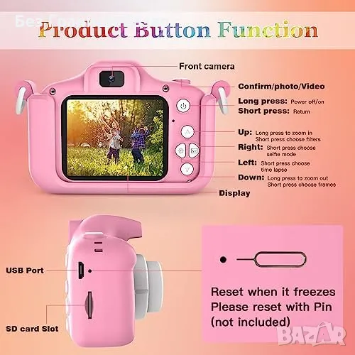 Нов Детски цифров фотоапарат за деца / 1080P HD Подарък 3-12год.