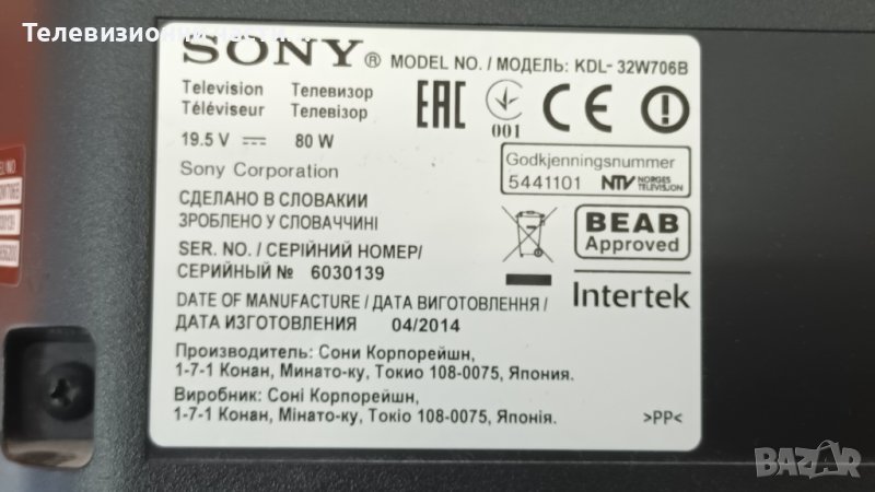 Sony KDL-32W706B със счупен екран-1-889-202-22/1-889-203-13/T32-30-L T32-30-R 74.32T41.0/T320HVF04.1