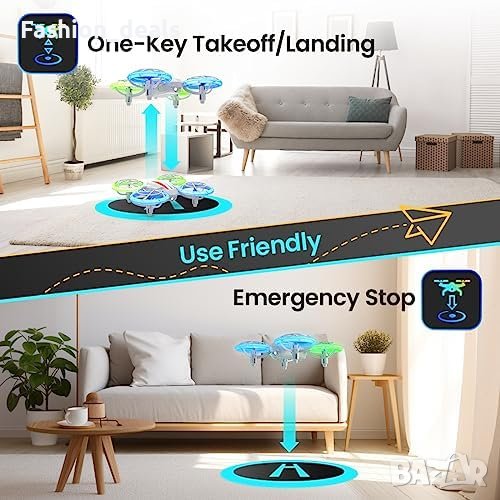 Един бутон за излитане и кацане, три скорости за избор, режим без глава за лесно определяне на посоката и функция за задържане на височината за автоматично зависване.