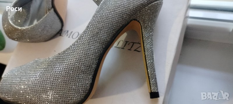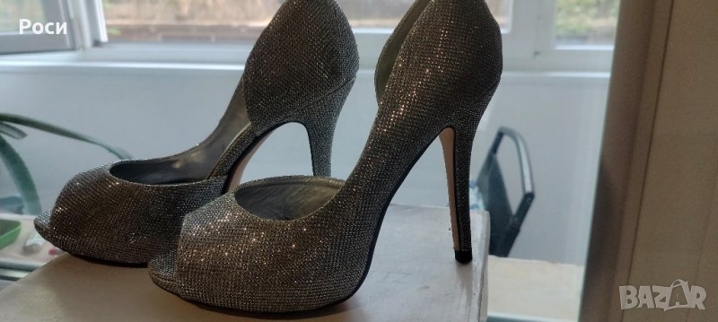 Елегантни дамски обувки на ток в сребърно 38 номер → Обява 41726656