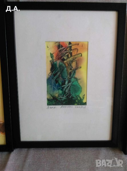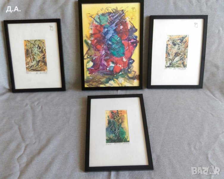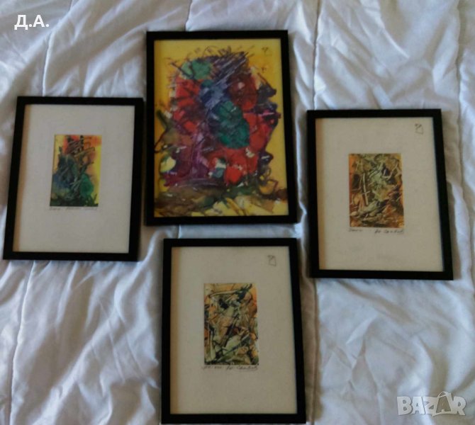 Смесена техника малки картини 4 броя с размери 32/23 и 26.20см с обикновена рамка Цената е за една картина