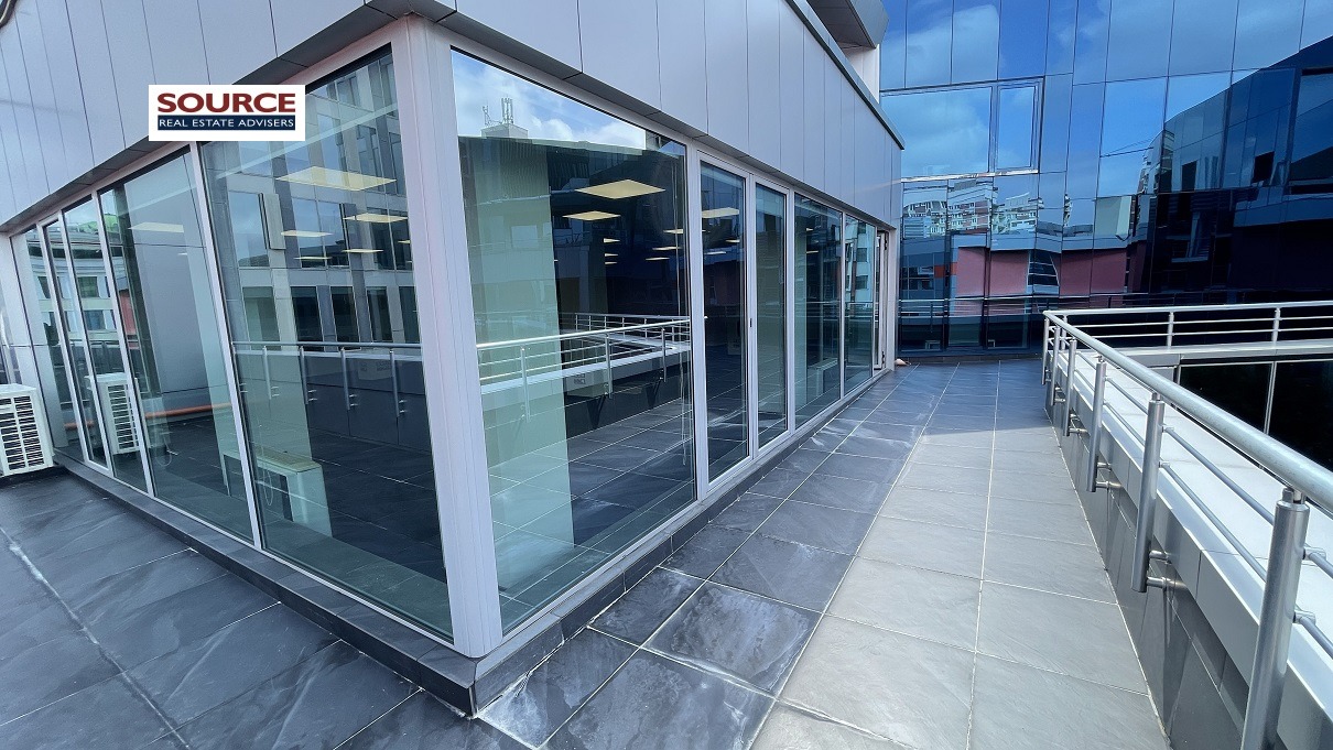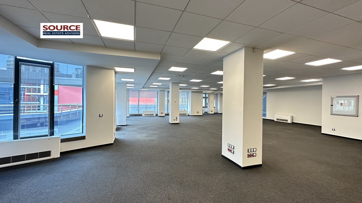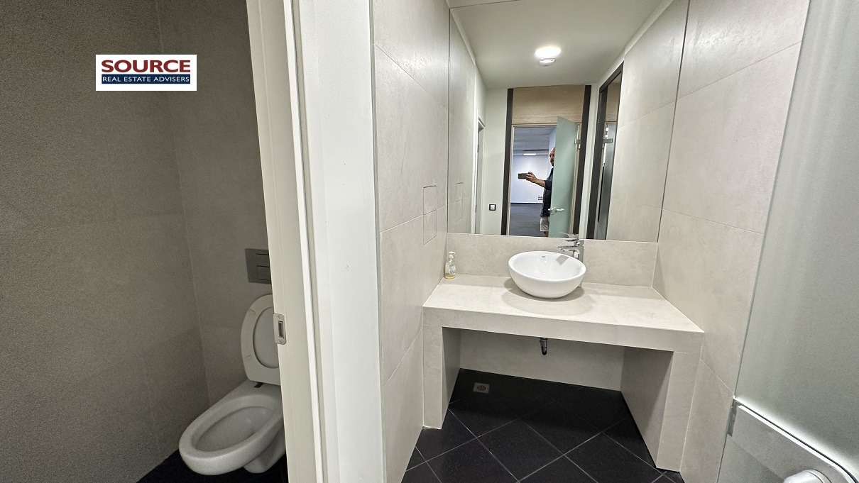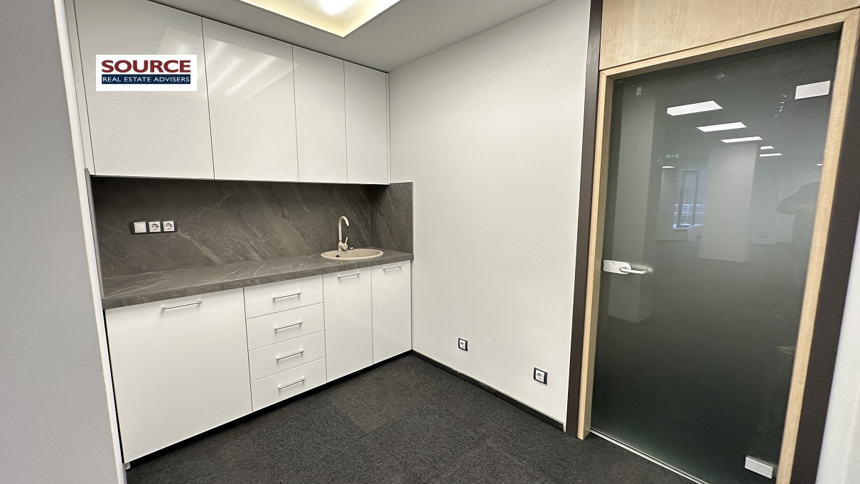 2. Разпределение: 1 голямо Open space помещение, оборудвана кухня, 2 wc. Офисът може да бъде допълнително преграден според изискванията на Наемателя.