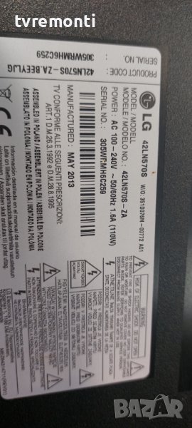 MAIN BOARD ,EAX64797003(1.2) for LG 42LN570S 42inc DISPLAY LC420DUE-SFR3 борда е гарантирано работещ Демонтиран от телевизор LG модел 42LN570S със счупен дисплей LC420DUE-SFR3 тесвана от нашия техник