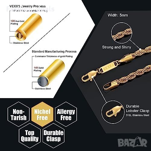 Двойно покритие с 18K реално злато: Изработена от висококачествена неръждаема стомана 316L, покрита с 18K реално злато и