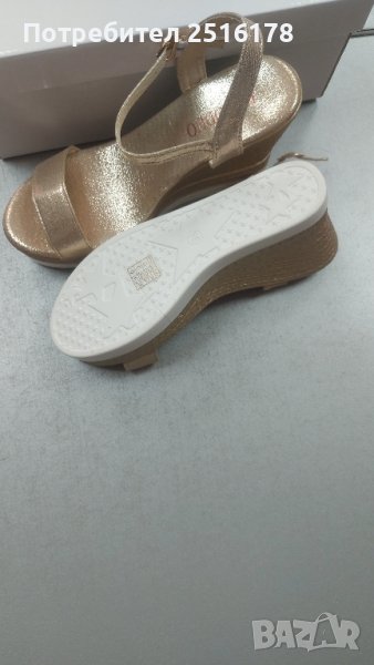 Сандалите са нови!Купувани за 59лв.Номер 38, но са малко умалени, стелката е 24 см.Височина на платформата 10 см.Много леки и удобни.