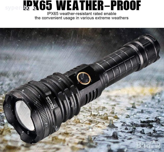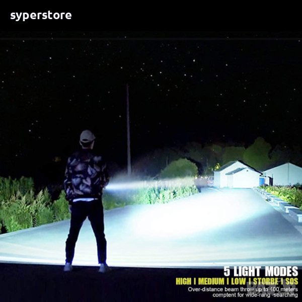 LED акумулаторнo фенерче. 100 000 лумена мощно мащабируемо фенерче с USB кабел, IPX6 водоустойчиво супер ярко фенерче с висок лумен за къмпинг туризъм