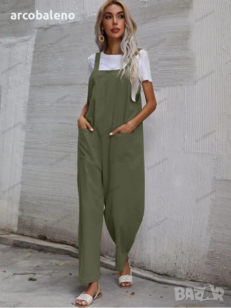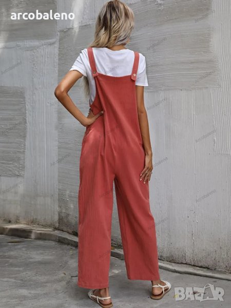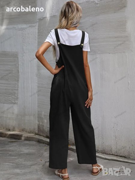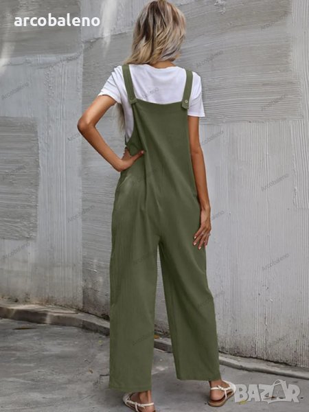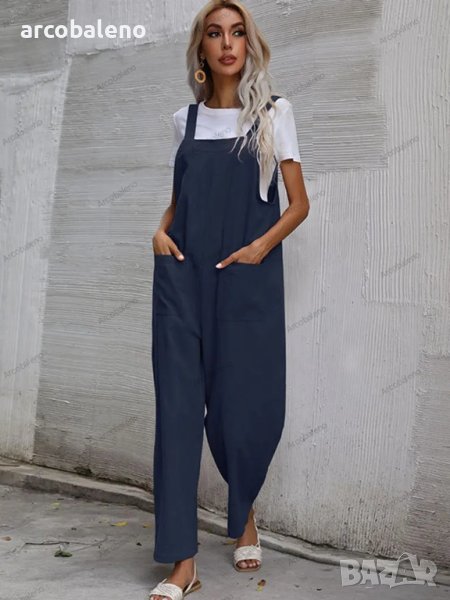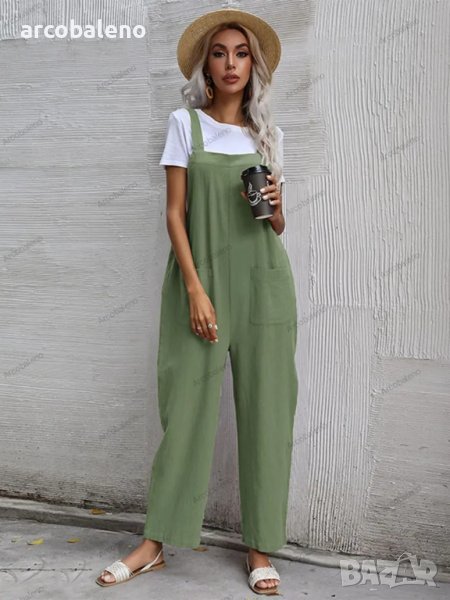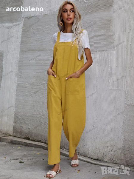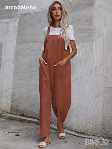 Дамски моден едноцветен гащеризон без ръкави и с тиранти, 9цвята