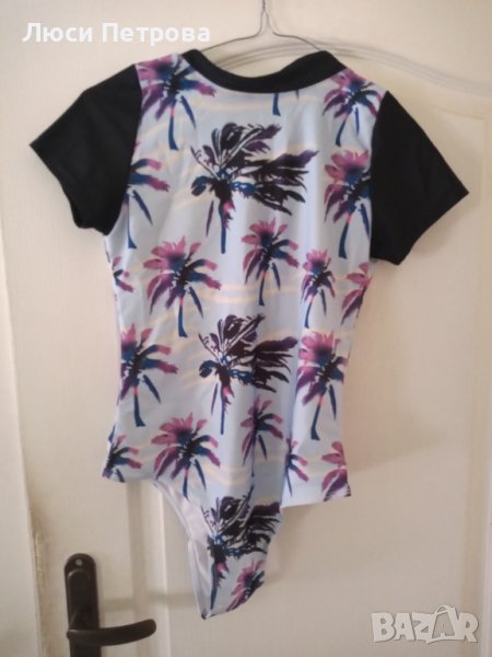 Продавам бански с къс ръкав черно с палмички за уейк, кайт или сърф. Никога не е използван по предназначение. Размера е между С и М. Трябва да имате опит с обличането и събличането на такъв вид бански.