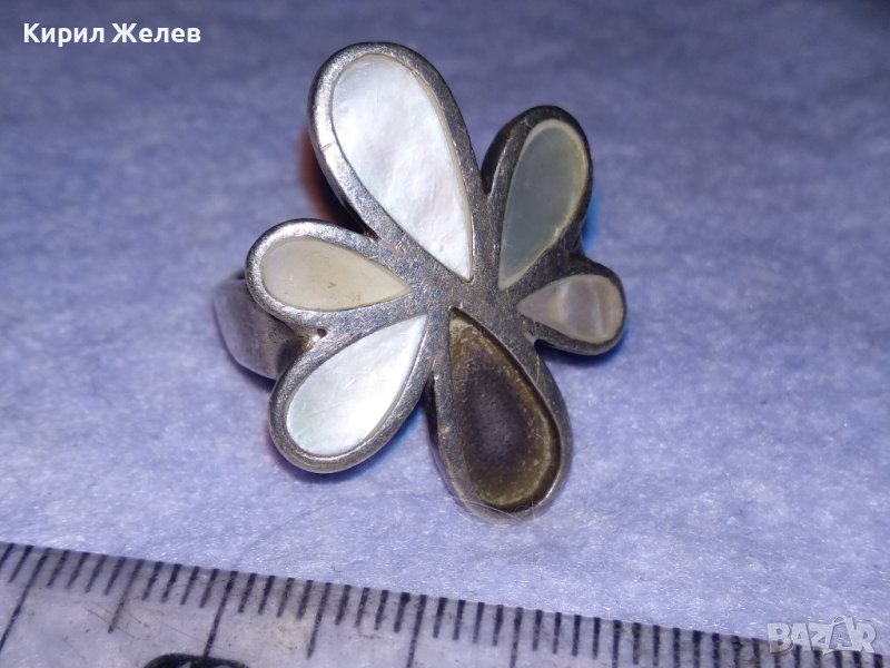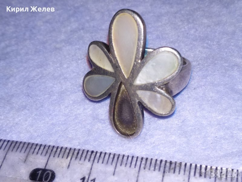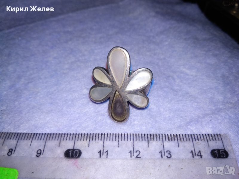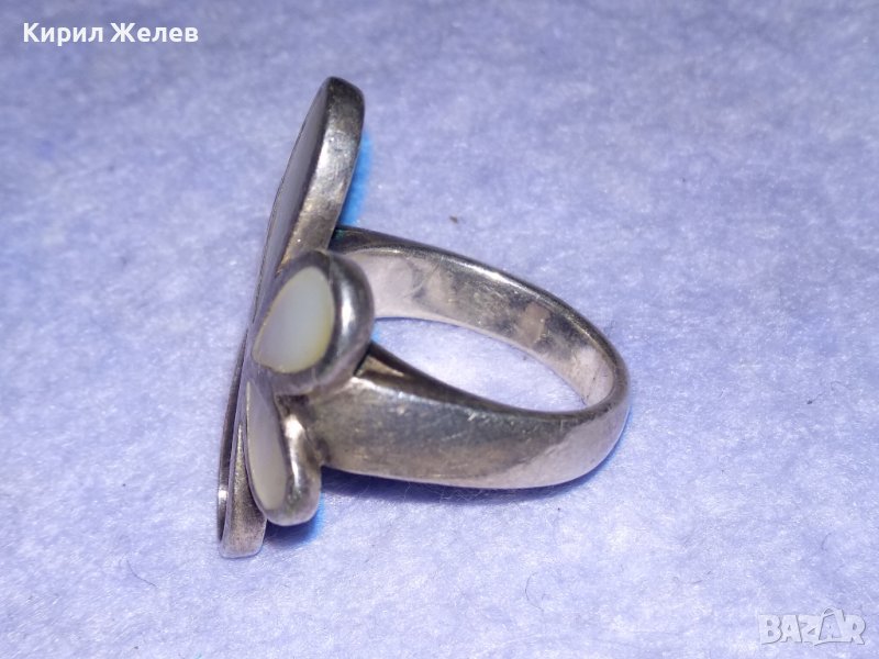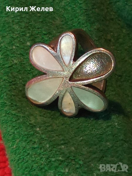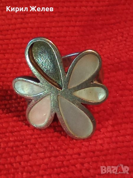 ВЕЛИКОЛЕПЕН ФЛОРАЛЕН СЕДЕФЕН СРЕБЪРЕН ПРЪСТЕН ЦВЕТЕ СРЕБРО 925 ИНКРУСТИРАН с ПОЛИРАН СЕДЕФ 13771