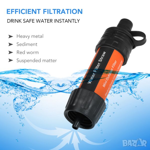 ✅ Пречистване до 0.01 микрона (филтрира бактерии, протозои, микропластици)