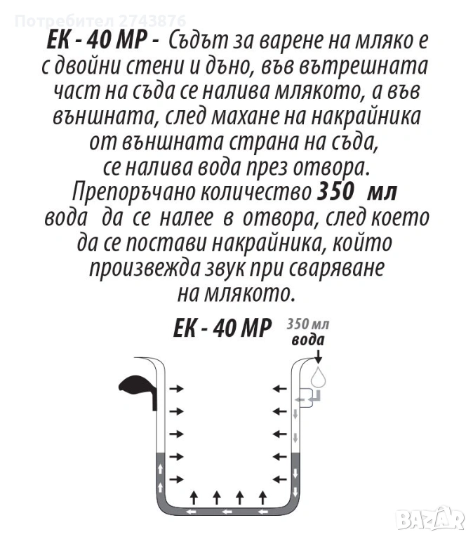 *ВАЖНО! ЕК-40 MP-Съдът за варене на мляко е с двойни стени и дъно,