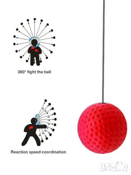 Боксовата тренировъчна топка от специална гума с еластично въже и регулируема лента за глава се използва за рефлекси, бързина, точност, бойни спортове, ММА, Муай-тай, Бокс и много други.