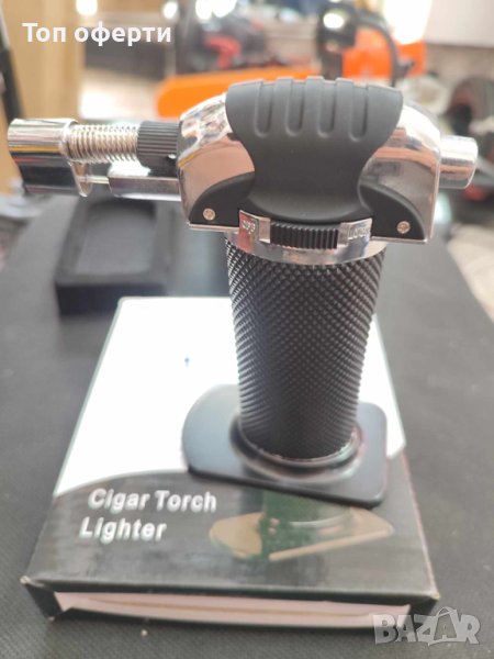 Подходяща за готварски цели, разтопяване на захар, каралемизиране, крем карамел, крем брюле, разпалване на барбекю, ремонт на уреди и бижута, запалване на огън в буря. За да запалите задръжте задния бутон. За да задържите пламъка плъзнете левия бутон в посока LOCK. Плъзгач за настройка на пламъка отдясно. Поставка, която не е от най-надеждните. Дюза за зареждане, разположена отдолу. Релефна ръкохватка против приплъзване на мокри/мазни ръце. От съображение за сигурност се доставя полу-празна, следва да се дозареди с газ.