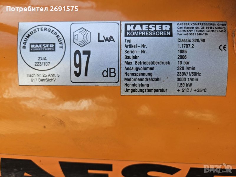 Компресор за въздух kaeser 90 литра → Обява 41750467