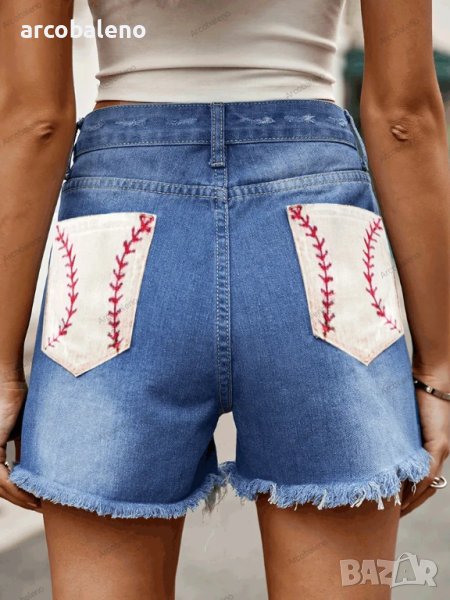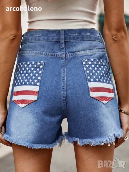 Дамски дънкови къси панталони с щампа на американското знаме, 5модела