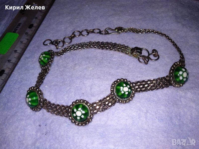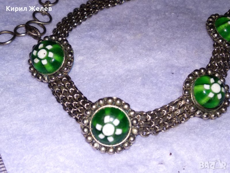 СТАРО РЕТРО ГОТИК АРТ КОЛИЕ ЧОКЪР посребрена благородна стомана с ВЕНЕЦИАНСКО СТЪКЛО МУРАНО 56641