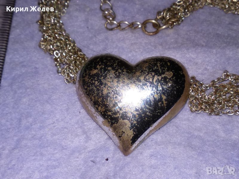 СТАРО ШАРМАНТНО СЪРЦЕВИДНО ПОСРЕБРЕНО МЕДНО ВИНТИДЖ КОЛИЕ 18180
