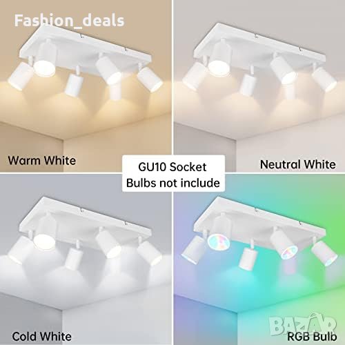 Използва стандартен цокъл за крушки GU10 (крушките не са включени в комплекта)