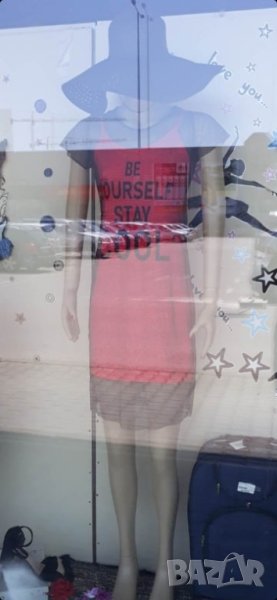 дамска рокля в неоново розово с мрежа ,която не е зашита за роклята размер подходящ за С и за М,много еластична материя