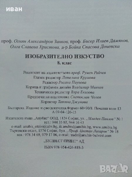 Изобразително изкуство за 8.клас - О.Занков,Б.Дамянов,О.Христова,Б.Доневска - 2009г. → Обява 41753799