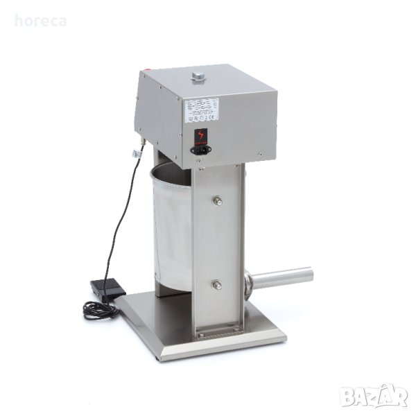 Пълнителят за наденички разполага с 10 степени и дигитален дисплей показващ точната скорост на пълнене, която може да се зададе лесно със сензорните бутони. Машината включва и педал за задействане.