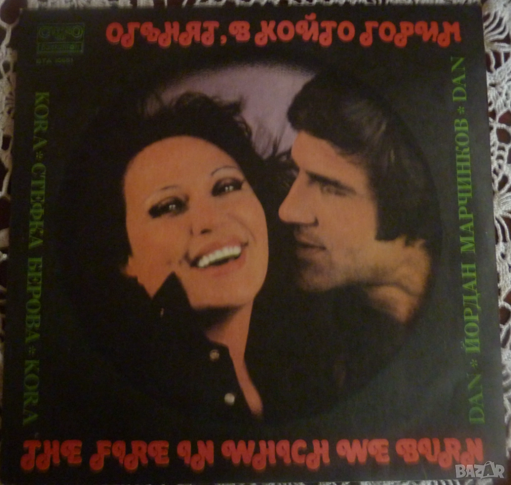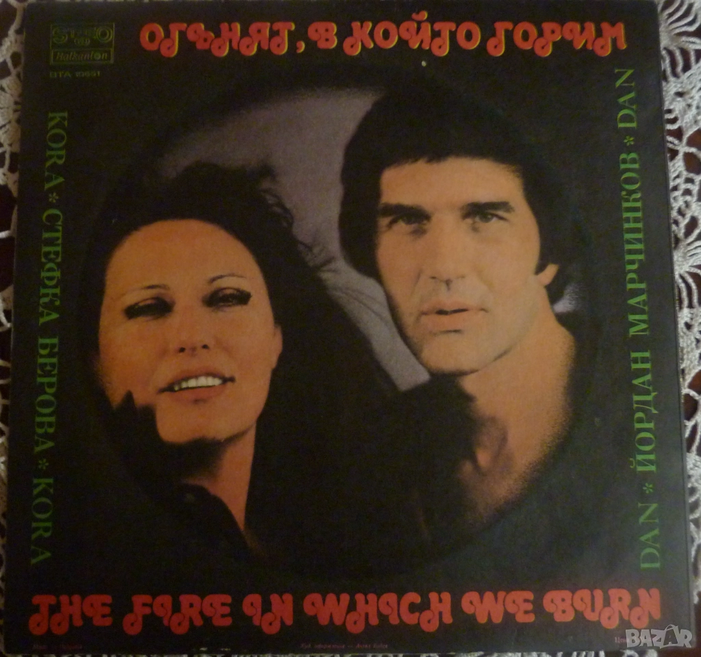 Стефка Берова и Йордан Марчинков ‎– Огънят, в който горим, ВТА 10651 в отлично състояние. Цена 5.00 лева.