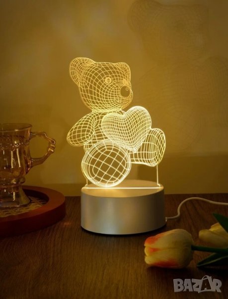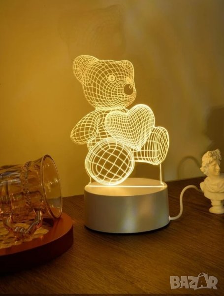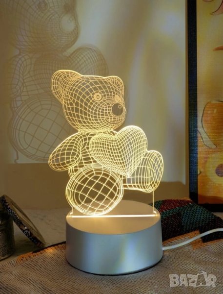 Уникална 3D лед нощна лампа мече със сърце.