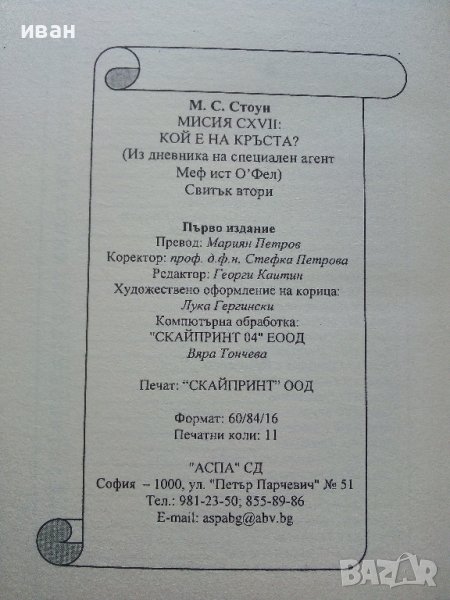 Кой е на кръста? втора част - М.С.Стоун - 2005г. 173стр.