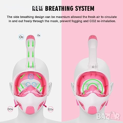 Нова Маска за гмуркане със странична система за дишане 180 ° изглед