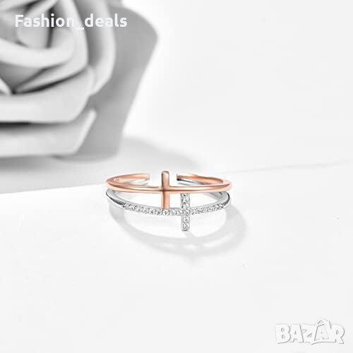 Материал: 925 стерлингово сребро, без никел, олово и кадмий, без алергени Размер: 8# (0.71 инча), Тегло: 3.3 г Дизайн: Регулируем пръстен с кръст, символизиращ любов, вяра и възраждане Подарък: Подходящ за момичета, сестри и приятелки за различни поводи Опаковка: Красиво подаръчно кутия, идеално за подарък