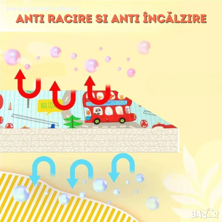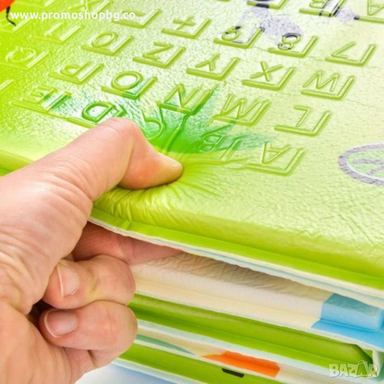 Двустранната подложка за активна гимнастика с противоплъзгащо покритие ще улесни на малчуганите комфортното опознаване на заобикалящия ги свят, а също ще им помогне да се научат да повдигат главата си, да стават и да пълзят. Тя е много мека, благодарение на което упражненията в обръщане и ставане ще бъдат напълно безопасни и на децата ще им е удобно. Изработена от безвредни материали,100% водоустойчива, лесна за почистване само със суха кърпа, подложката е незаменима навсякъде където разливането и цапането е неизбежно. Лесно се разгъва и осигурява за секунди забавно и безопасно място за игра, след което се прибира като се сгъва до компактни размери.