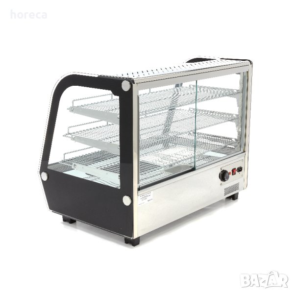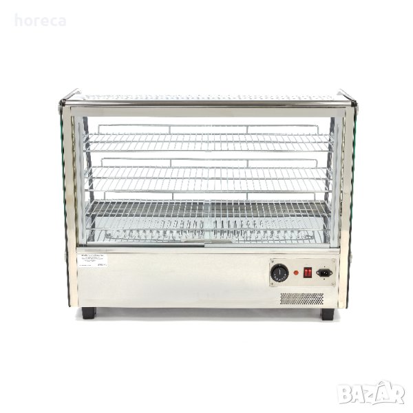 Мощният нагревателен елемент осигурява ефективно разпределение на топлината. Витрината е оборудвана с резервоар за овлажняване, който предпазва храната от изсъхване и запазва свежестта й.