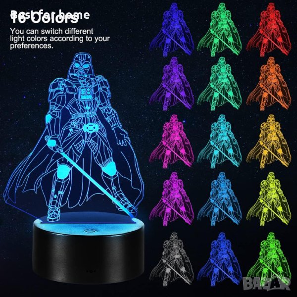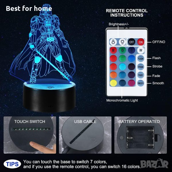 ✨【Лесна за използване】: 3D илюзионната лампа междузвездни войни може да се захранва от USB кабел или 3 AA батерии (НЕ СА ВКЛЮЧЕНИ). USB кабелът може да бъде включен в лаптоп, настолен компютър, преносима захранваща банка, USB адаптер за зареждане и др.
