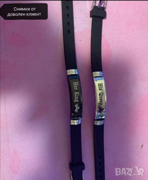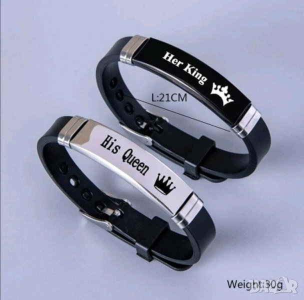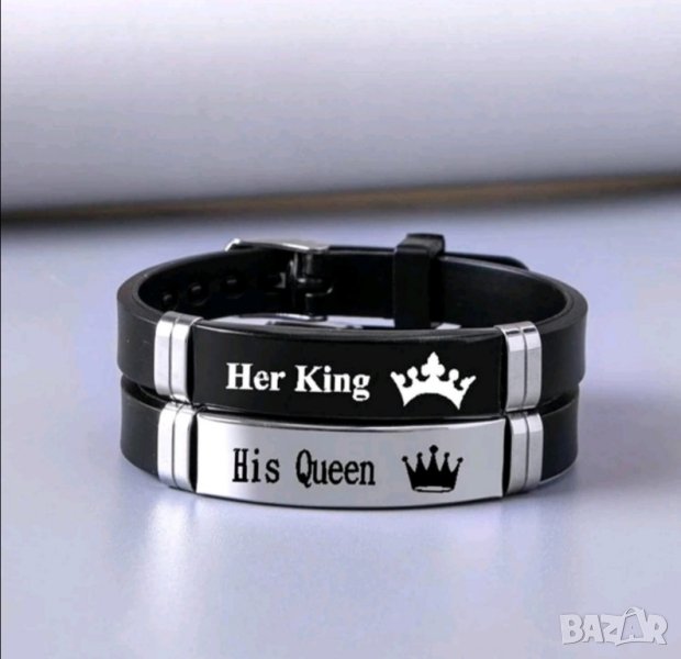 - Комплект гривни с надписи Her King и His Queen