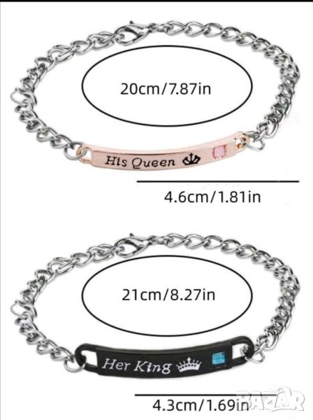 - Комплект гривни с надписи Her King и His Queen