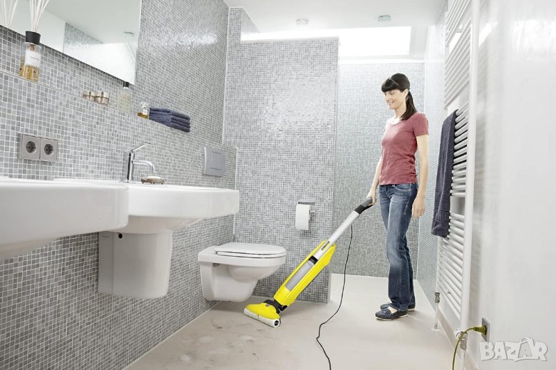 * Уредът за почистване на под на Керхер постига до 20 на сто по-добри резултати при почистване в сравнение с конвенционален моп с платнено покритие за избърсване в категорията тестове „Избърсване“. Отнася се до средни резултати от теста за ефективност на почистване, събиране на замърсявания и почистване до ръба.