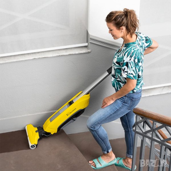 Почистване на твърд под, без кофа и без търкане? Няма проблем за Kärcher FC 5: Той премахва прах, дребни трохи, козина от домашни любимци и избърсва пода едновременно – точно до ръба. Въртящите се валяци са постоянно намокрени с прясна вода, докато събраната мръсотия се транспортира до контейнера за мръсна вода. Това оставя твърдите подове от всякакъв вид (плочки, паркет, ламинат, PVC и винил) с 20 % по-чисти в сравнение с конвенционалния моп * и след приблизително две минути отново може да се стъпва по тях. Друга практична характеристика: Валяците се перат машинно при 60 ° C. Kärcher предлага широка гама от почистващи препарати и различни валяци за специални подове (например запечатано дърво, омаслено/восъчно дърво, камък и др.). След употреба може да се почисти старателно с функцията за самопочистване.