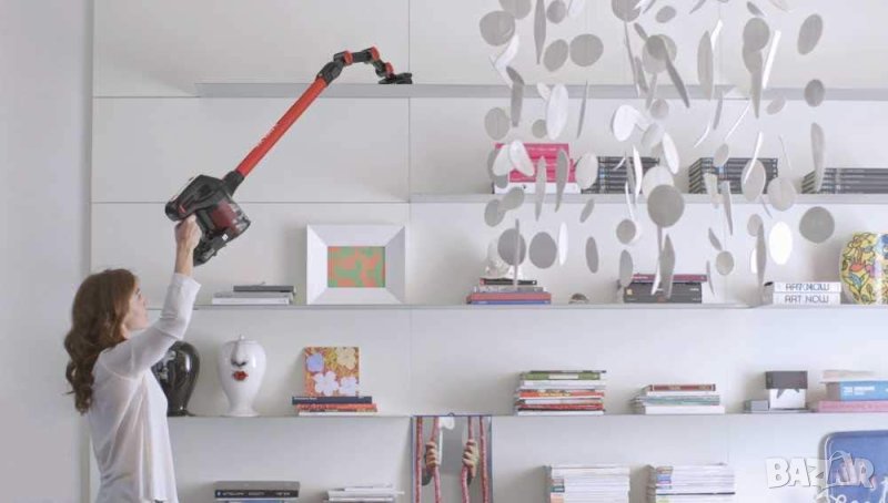 Не е нужно да окачвате прахосмукачката си на стената или да я поставяте на пода, когато искате да премахнете препятствие, тя стои във вертикално положение.