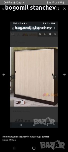 Гардероб Нов в кашони с плъзгащи врати 170 см → Обява 41766472