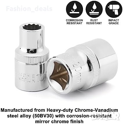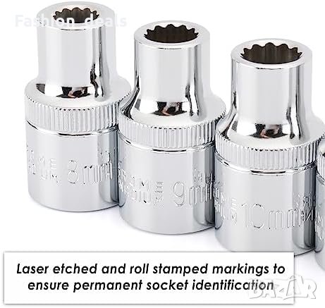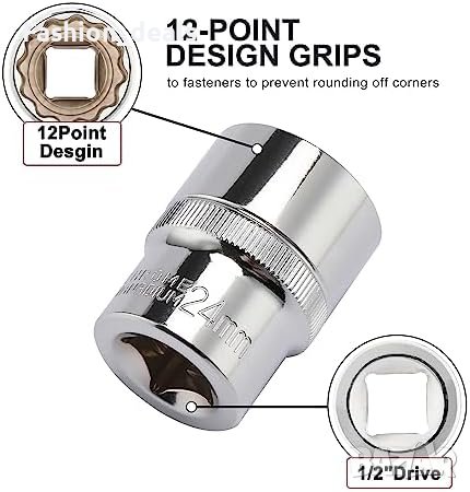 21 части комплект гедоре CASOMAN Размери: 8-36 мм Изработен от CR-V стомана (50BV30) Корозионно устойчиво хромирано покритие 12-точков дизайн за многообразни гайки Лесно преносим с удароустойчив куфар Перманентно маркирани размери на всяка част