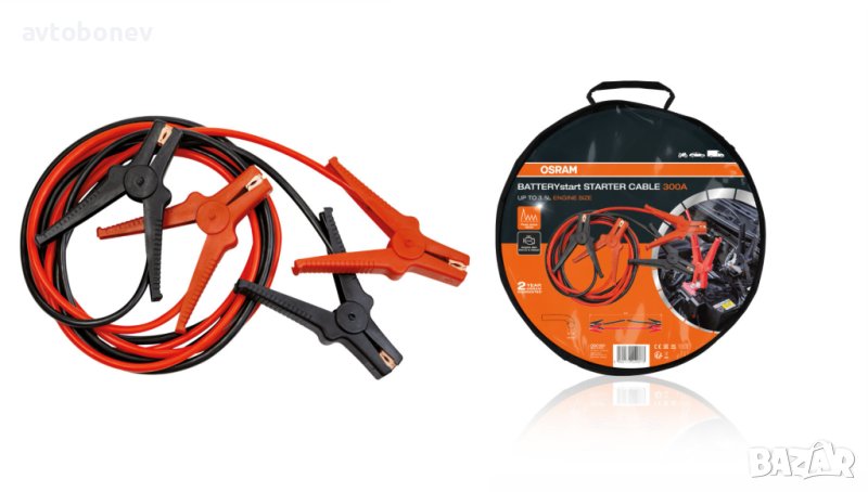 OSRAM BATTERYstart STARTER CABLE 300A е висококачествен кабел за подаване на ток, предназначен за професионална и лична употреба. За предотвратяване на високо износване, OSRAM BATTERYstart STARTER CABLE 300A е обвит в гъвкав, но издръжлив PVC, а изолираните клеми осигуряват допълнителна безопасност и издръжливост. Различните цветове на кабелите и дръжките на клемите намаляват риска от смесване на положителните и отрицателните клеми и по този начин риска от неправилно свързване към батерията. Чантата за съхранение, включена в доставката, позволява на кабелите да се съхраняват подредени и по начин, който пести място. За удобство инструкциите за експлоатация също са прикрепени към гърба на чантата за съхранение и по този начин са бързо под ръка. OSRAM предлага 2-годишна гаранция за този продукт.