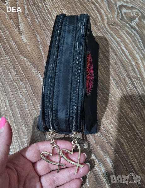 Купуван е за 45лв.и му е свален етикета и опаковката,но не е ползван поради наличие на други.Цената е намалена заради махнатата опаковка.На дърпачите на ципа с формата на сърца и на 2те има лого с надписа на марката.Купуван от сайта на марката!Дължина-17см,височина-11см,дебелина-7,5см