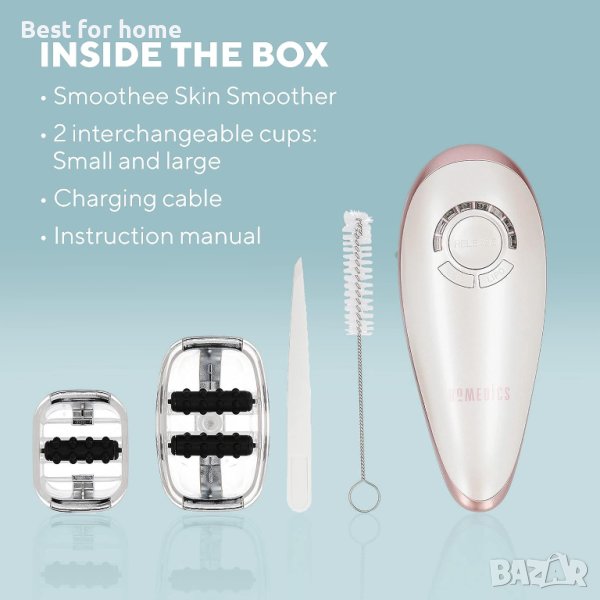HoMedics Smoothee Skin Smoother ви помага видимо да подобрите кожата и формата на тялото си. С комбинацията от вакуумен масаж и електронна стимулация (EMS), целулитът и портокаловата кожа могат да бъдат намалени.