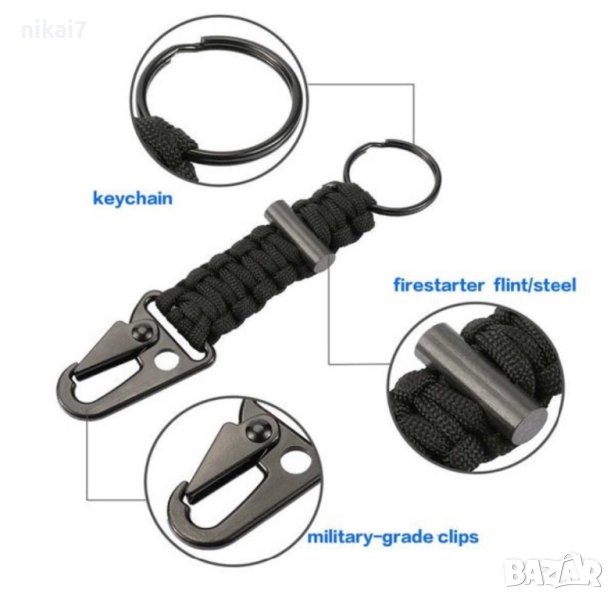 тактически ключодържател с карабинер и паракорд високо натоварване